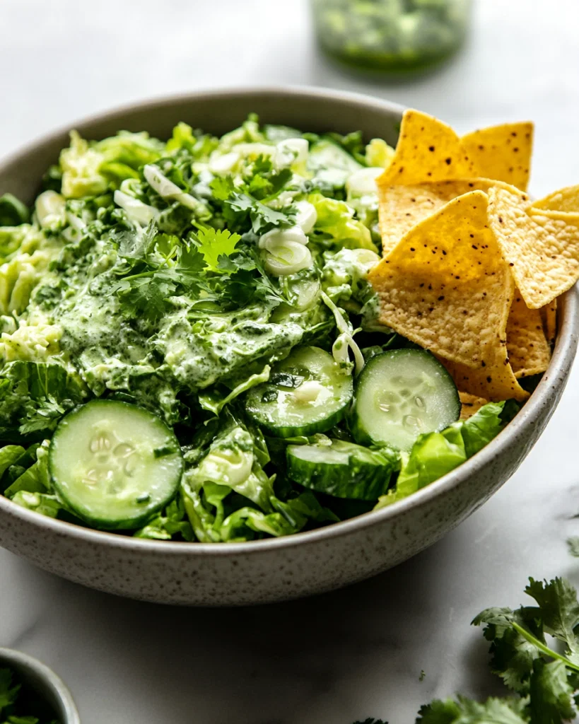 This green goddess salad is crisp, creamy, and refreshing without trying too hard. It feels clean and satisfying.