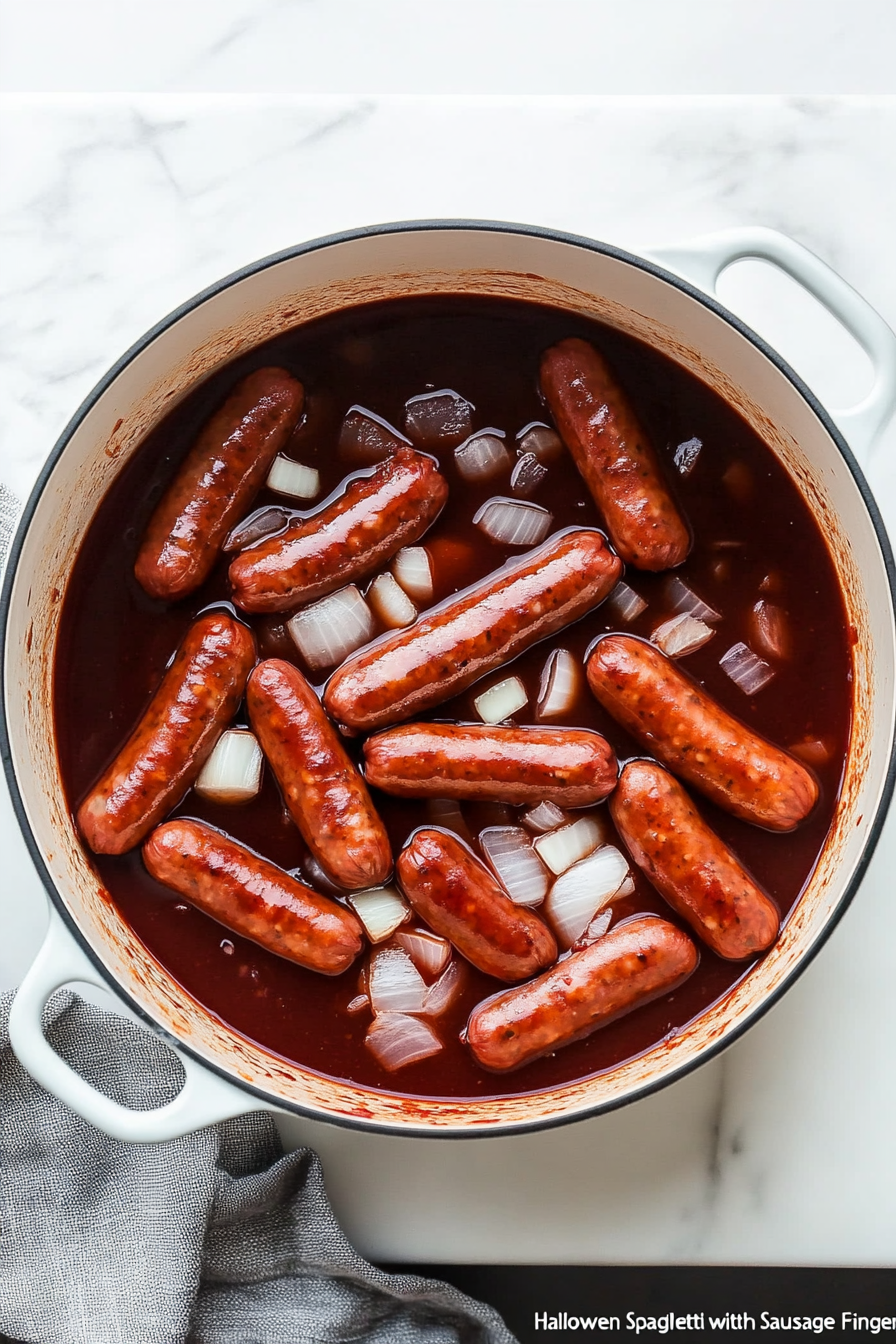 Preparing Sausage Fingers with Onion Nails for Sausage Fingers Pasta Recipe