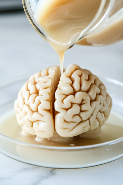 - For a “bloody” effect, mix ¼ cup seedless raspberry jam with a teaspoon of water and microwave briefly. Stir, then drizzle over the brain. Enjoy the spooky effect!