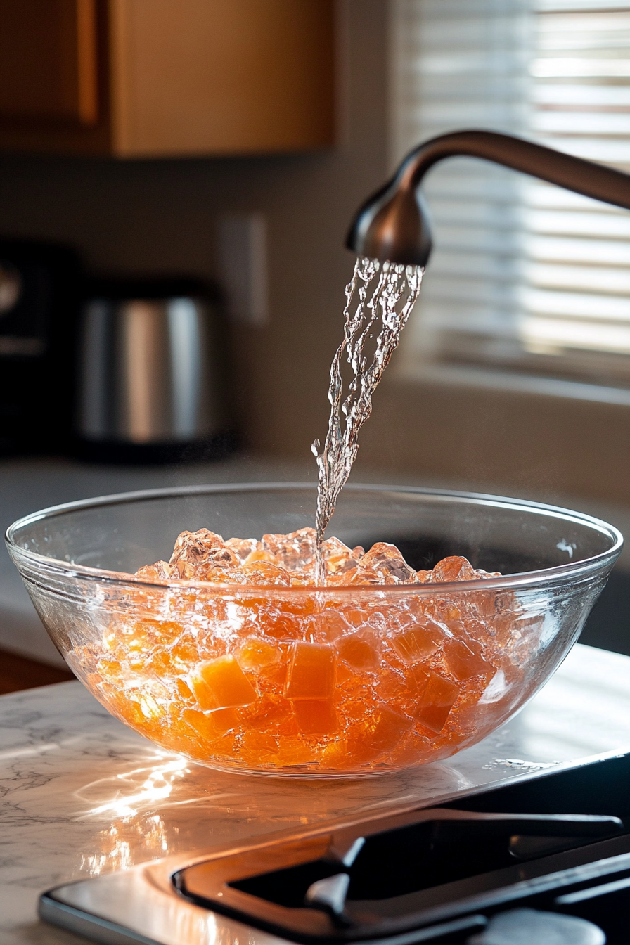 - Add 1 cup of cold water to the gelatin mixture and stir.