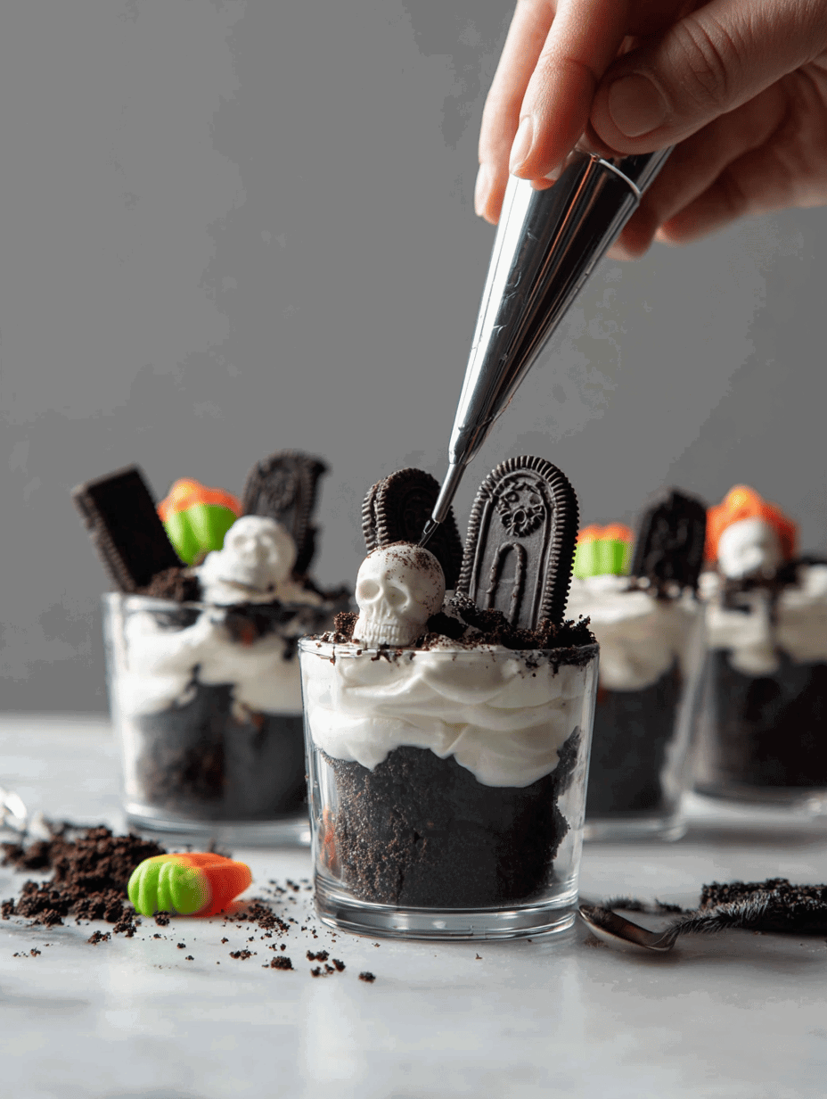 These little cups aren’t just treats—they’re a tiny, edible scene that turns a simple dessert into a spooky story. Perfect for Halloween, but honestly, they’re a reminder that sometimes chaos in the kitchen makes the best memories. No matter how they turn out, they’ll get smiles and maybe a few giggles—especially when kids realize they’re digging into a mini graveyard.