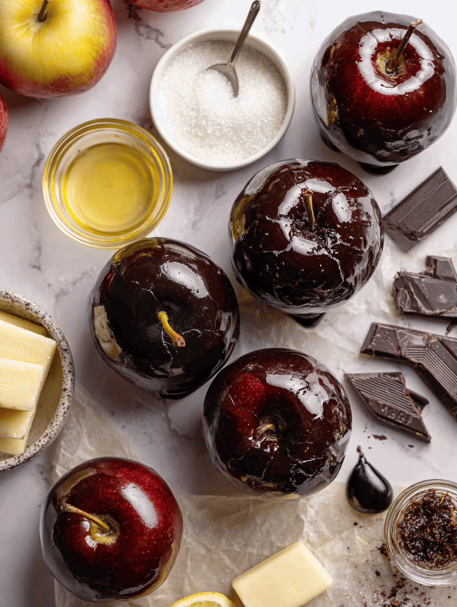 - Firm apples: They need to be crisp and dry, or the toffee won’t stick properly.