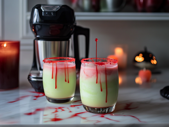 - Turn each glass upright and let the red syrup drip down the sides for a spooky effect.