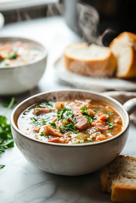 The ham brings richness, the vegetables soften into sweetness, and the broth ties everything together so naturally.