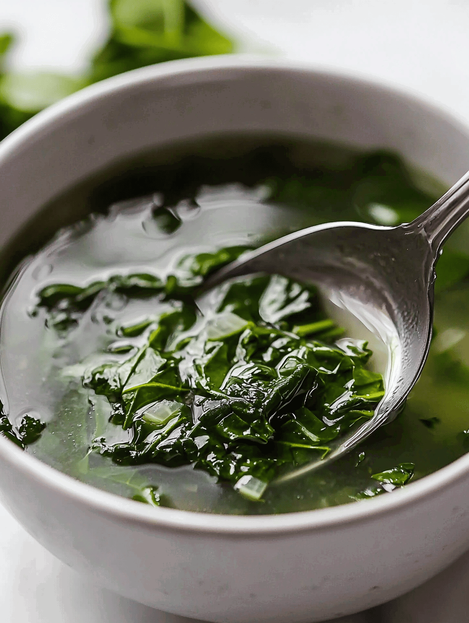 • Stir in the chopped spinach, allowing it to wilt and release a vibrant green color, adding freshness and a touch of earthiness to the broth.