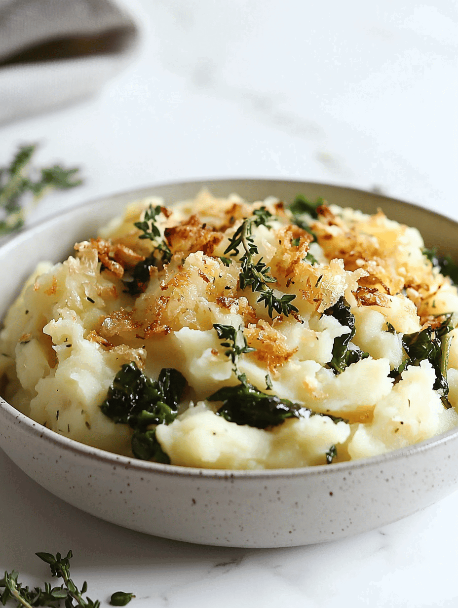 • Relish the comforting aroma of butter and crispy greens melting into velvety potatoes—smells like home.