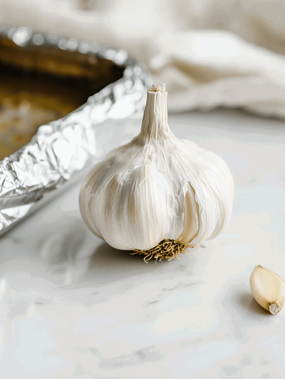 - Preheat your oven to 400°F (200°C). Place the whole garlic head on a baking sheet, drizzle with one tablespoon of olive oil, and wrap loosely in foil. Roast for about 30-35 minutes until soft and fragrant, filling the kitchen with a warm aroma.