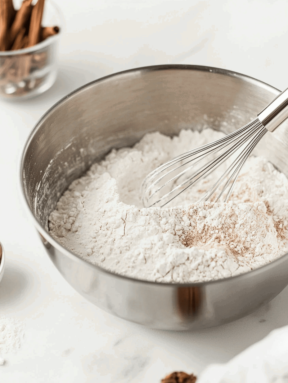 - In a large mixing bowl, whisk together the flour, cinnamon, cardamom, baking powder, and salt until evenly combined.2 cups all-purpose flour