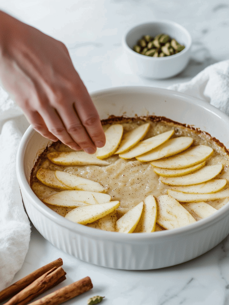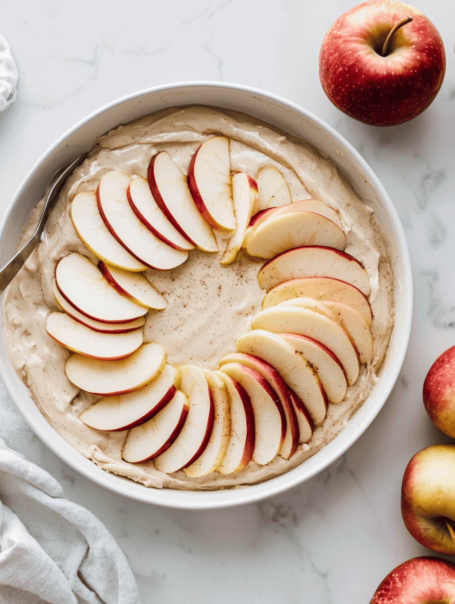 - Top with the remaining apple slices, pressing them lightly into the batter for a beautiful layered look.2 cups all-purpose flour
