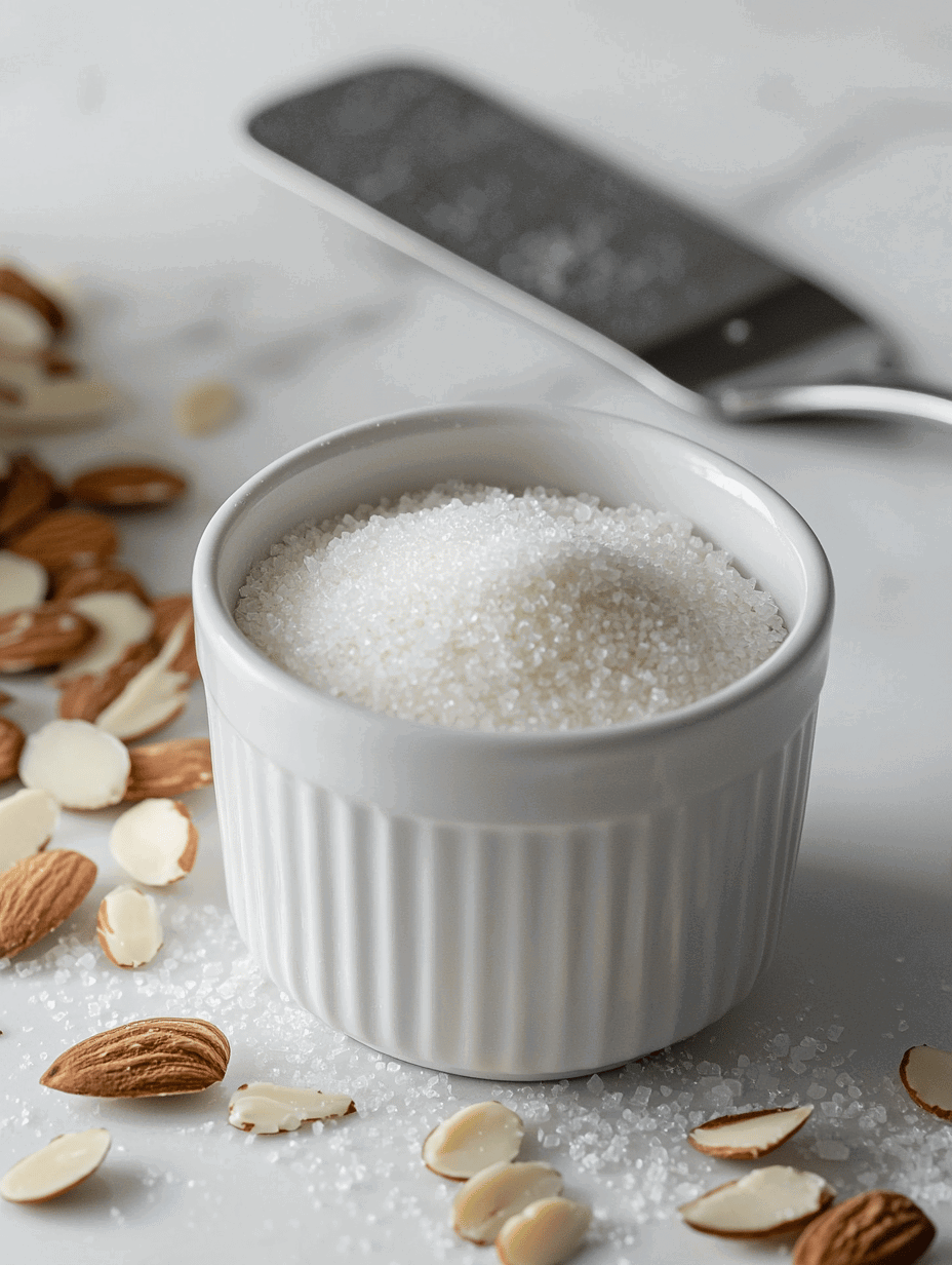 - In a small bowl, combine the sugar and sliced almonds. Sprinkle this mixture evenly over the top of the cake for a sweet, nutty crust.2 cups all-purpose flour