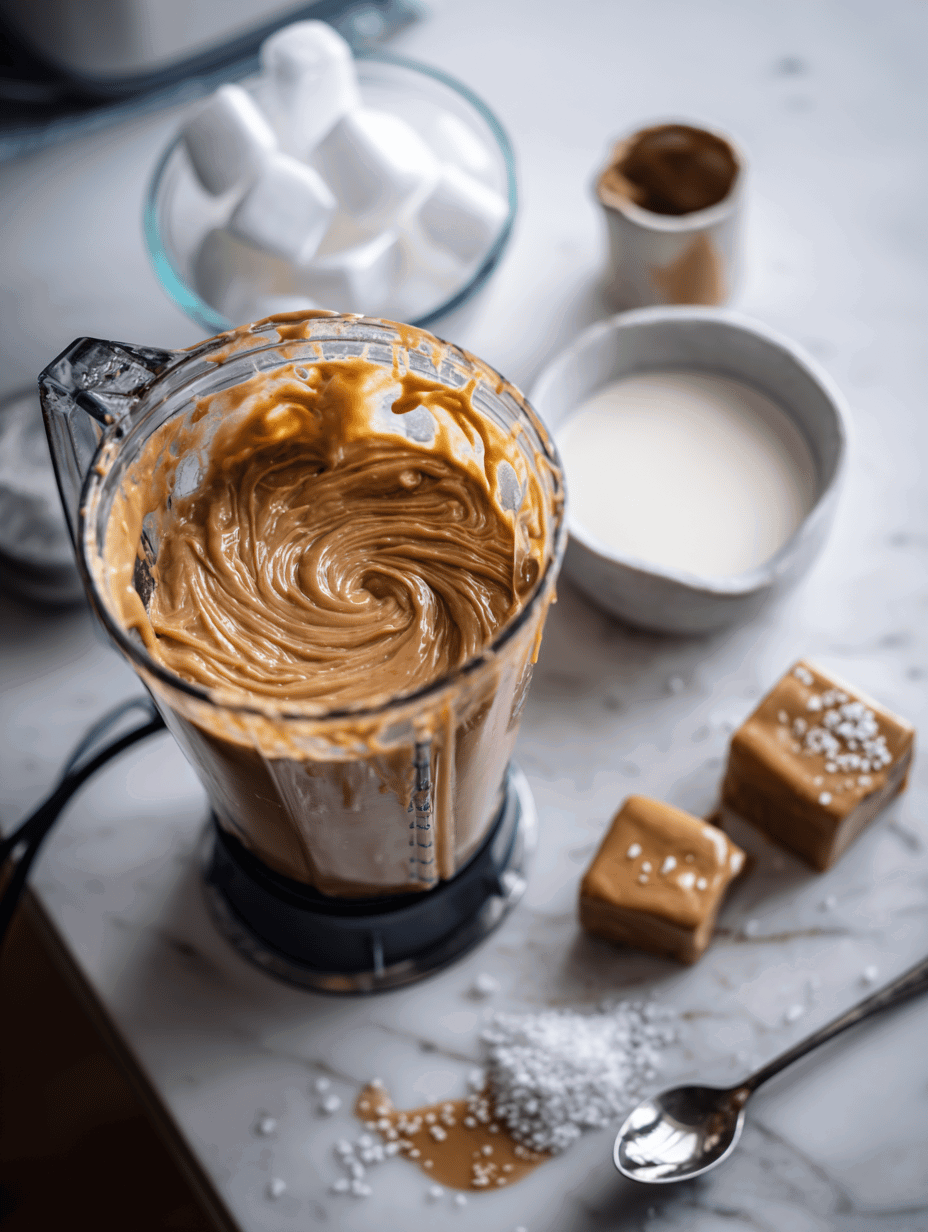 • Chill the caramel sauce in the fridge for about 10-15 minutes until it thickens slightly, making it easier to blend.