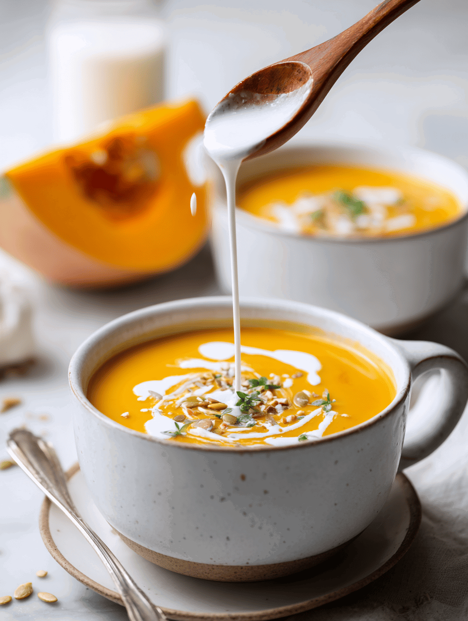 • Serve the soup hot, garnished with a drizzle of coconut cream, seeds, or herbs if desired. Enjoy this cozy, nourishing bowl that’s perfect for chilly evenings.