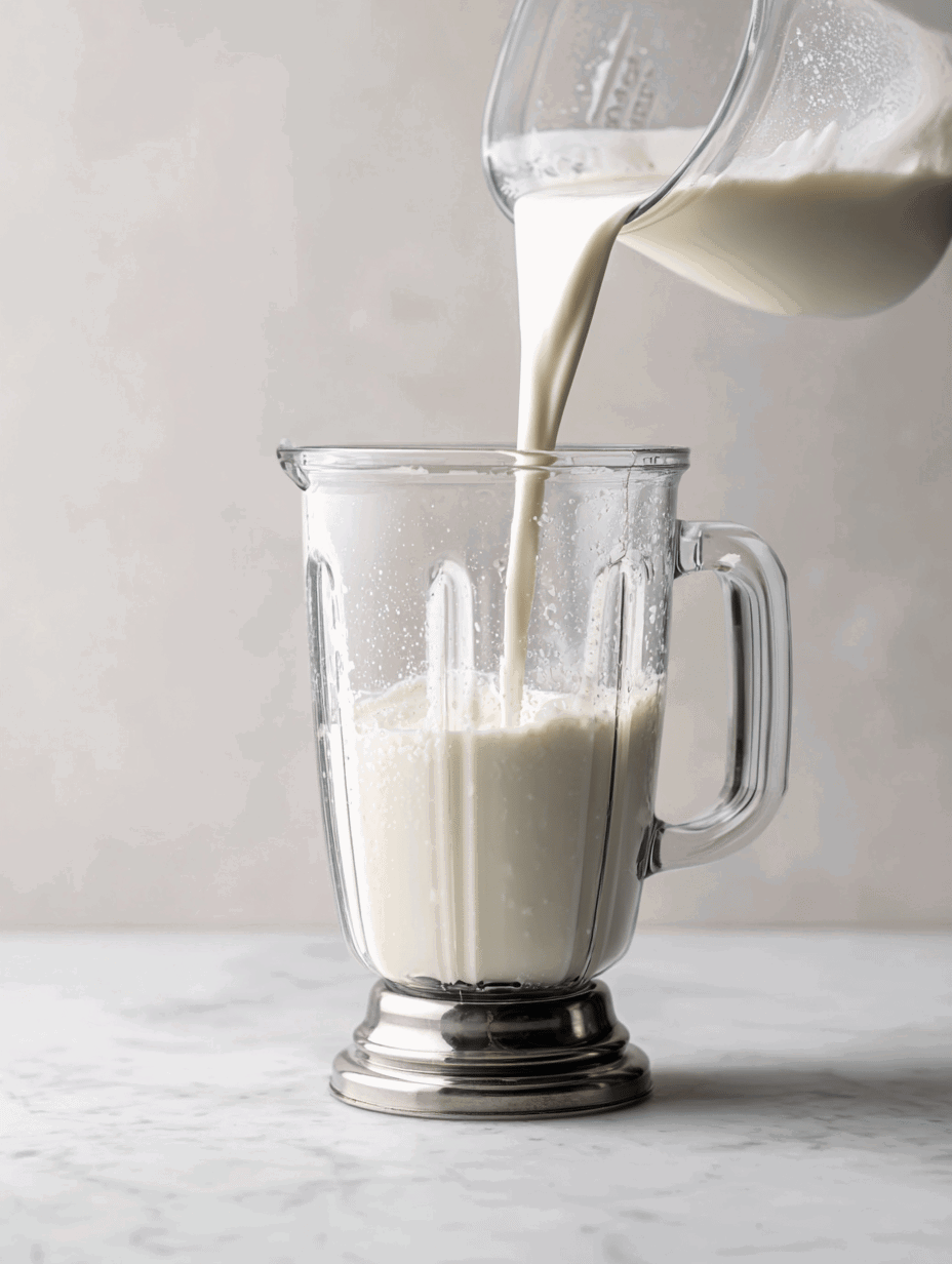 - Pour the milk into the blender, creating a liquid base for blending.