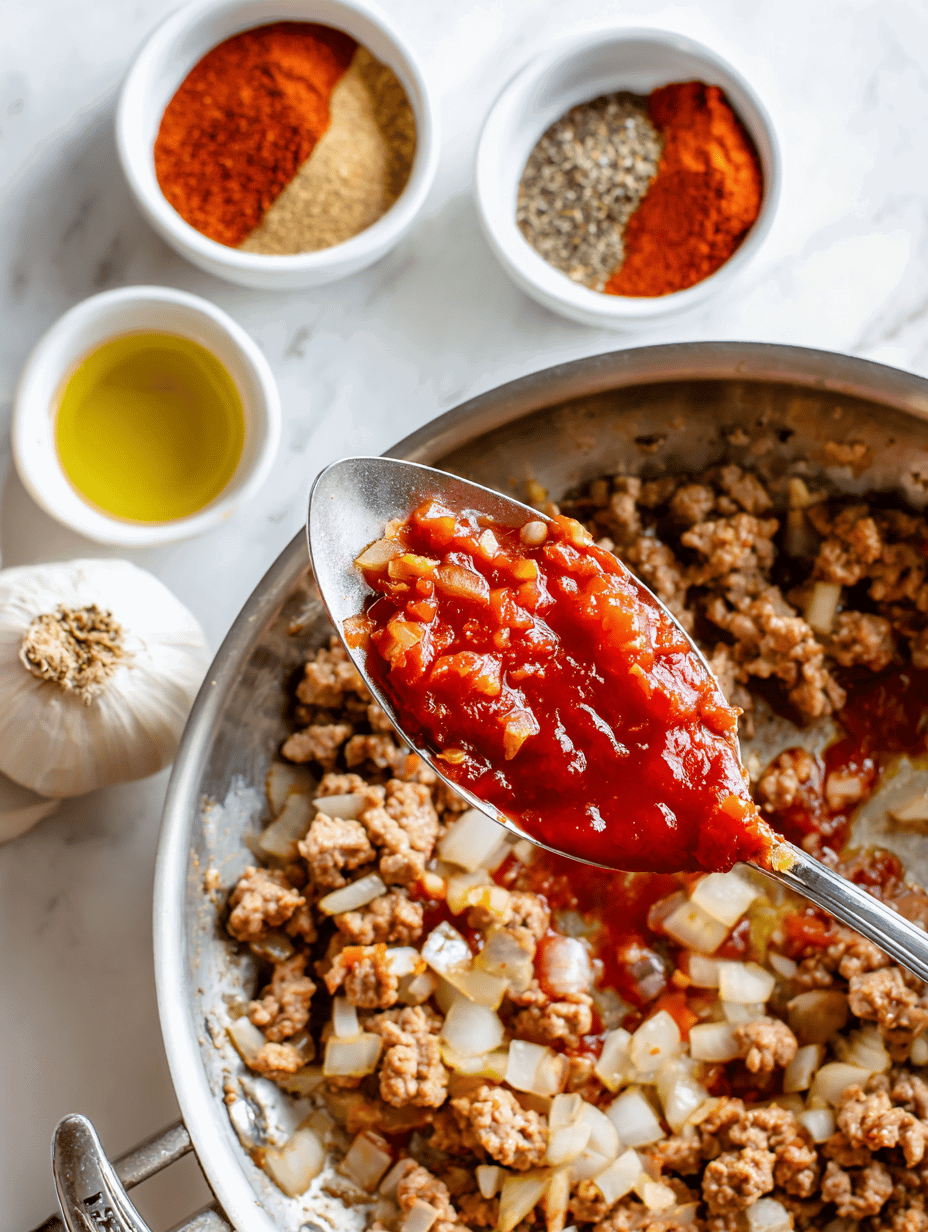 - Ground turkey: I prefer lean, but don’t skip the fat—adds flavor and keeps it from drying out. Swap with chicken if you like lighter.