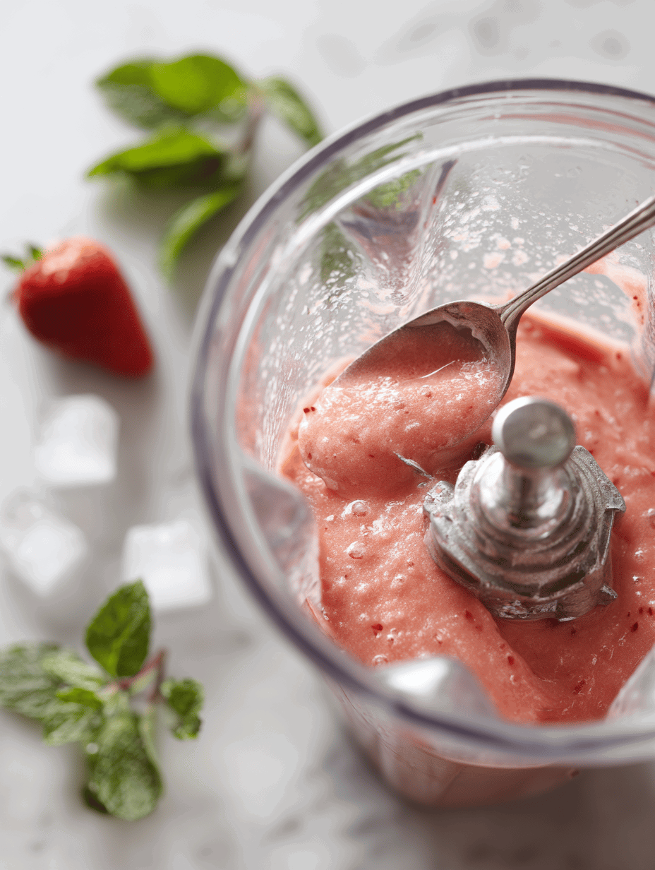 5. Check the texture: it should be thick enough to hold a spoon’s shape. Adjust with more ice or liquid if needed.