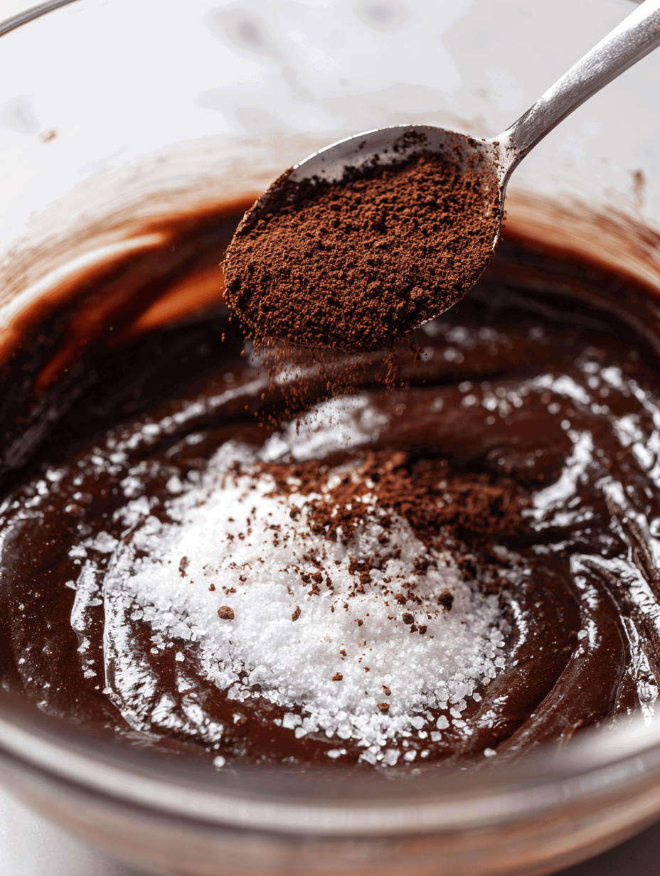 - Add the espresso powder and a pinch of sea salt to the batter, mixing just until the espresso dissolves and the ingredients are evenly distributed, releasing a smoky aroma.