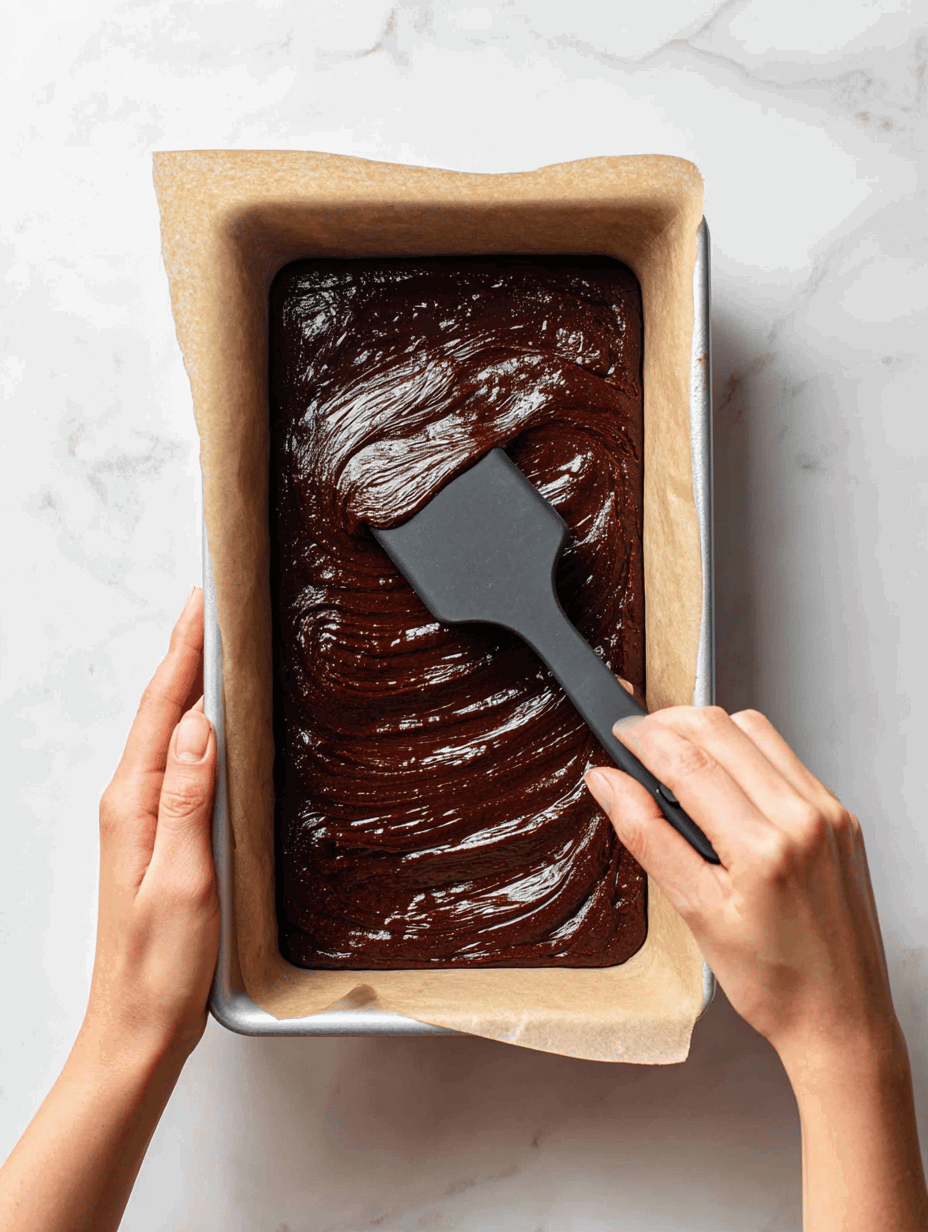 - Pour the batter into your prepared pan, spreading it evenly with a spatula. Tap the pan gently on the counter to settle the batter and release air bubbles.