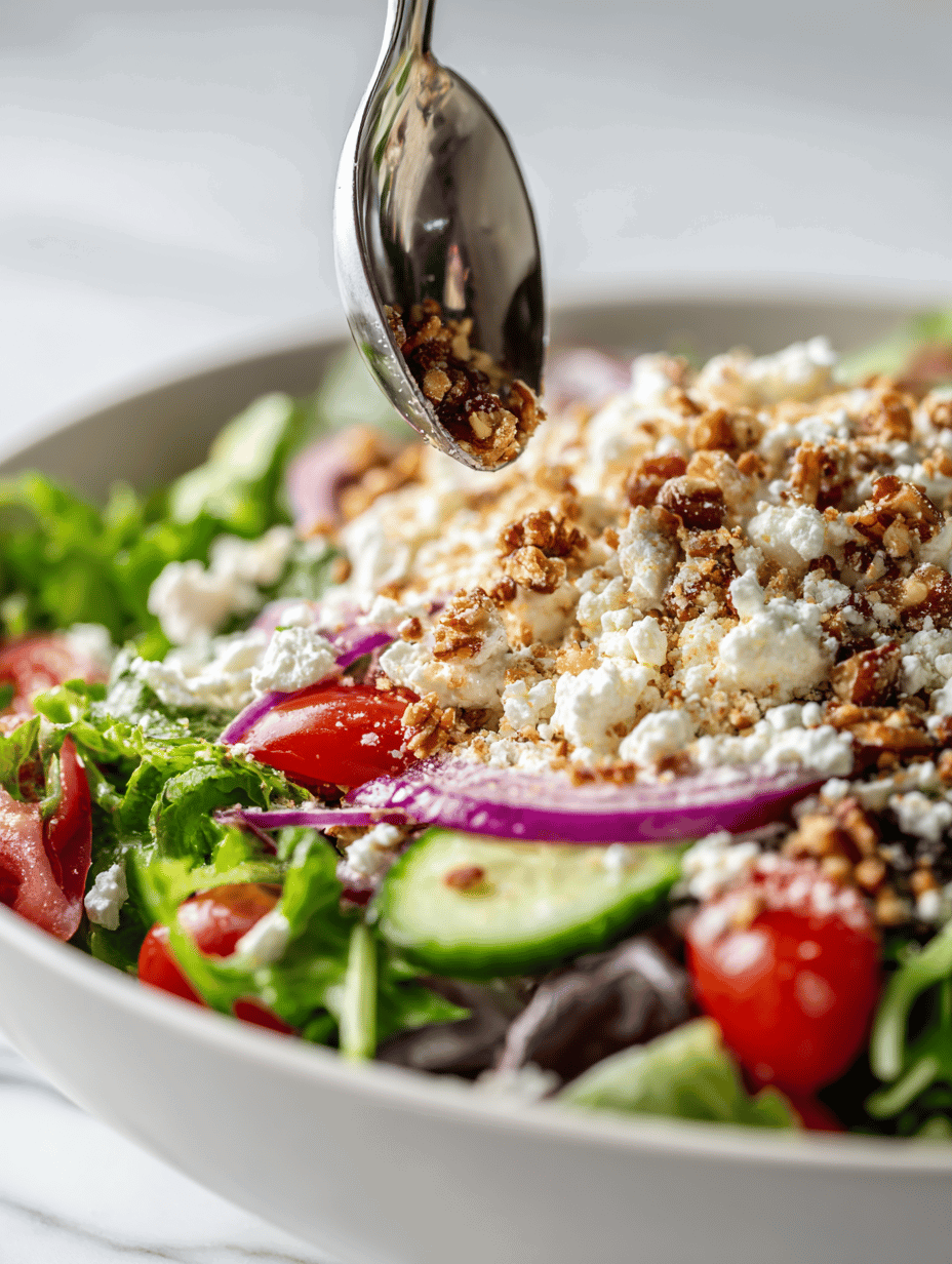 Step 5: Top with crumbled feta and toasted nuts for crunch.