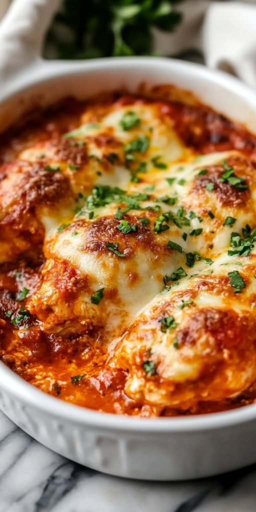 Keto Chicken Parmesan Casserole has all the flavors of the classic—juicy chicken, rich marinara, and melty cheese—without the carbs.