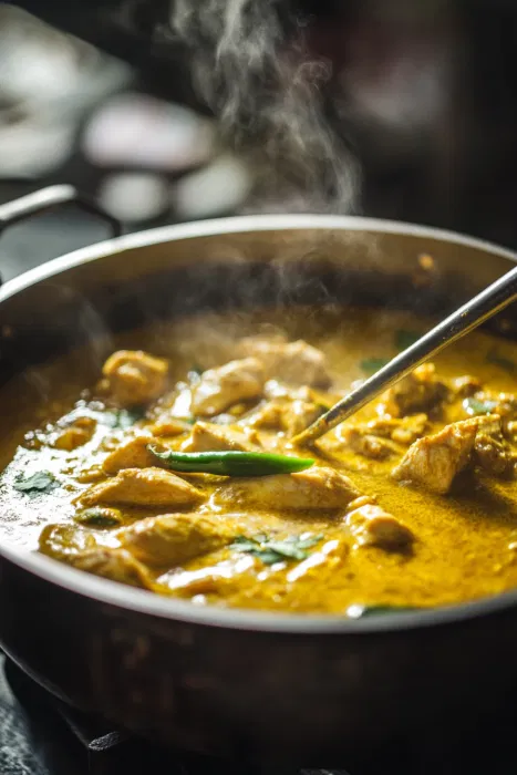This isn’t just curry. It’s a story told through layers, marinated chicken, open flame, coconut milk, and the unmistakable pull of turmeric and ginger.