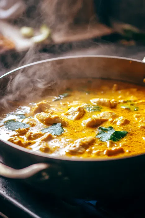 It’s tender grilled chicken bathed in a coconut curry sauce so rich, it feels like sunshine in a bowl.