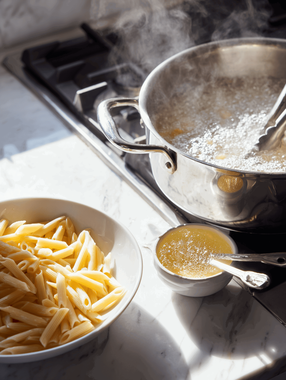 - When sauce is too thick, splash in hot pasta water—shimmering and loosening everything up.
