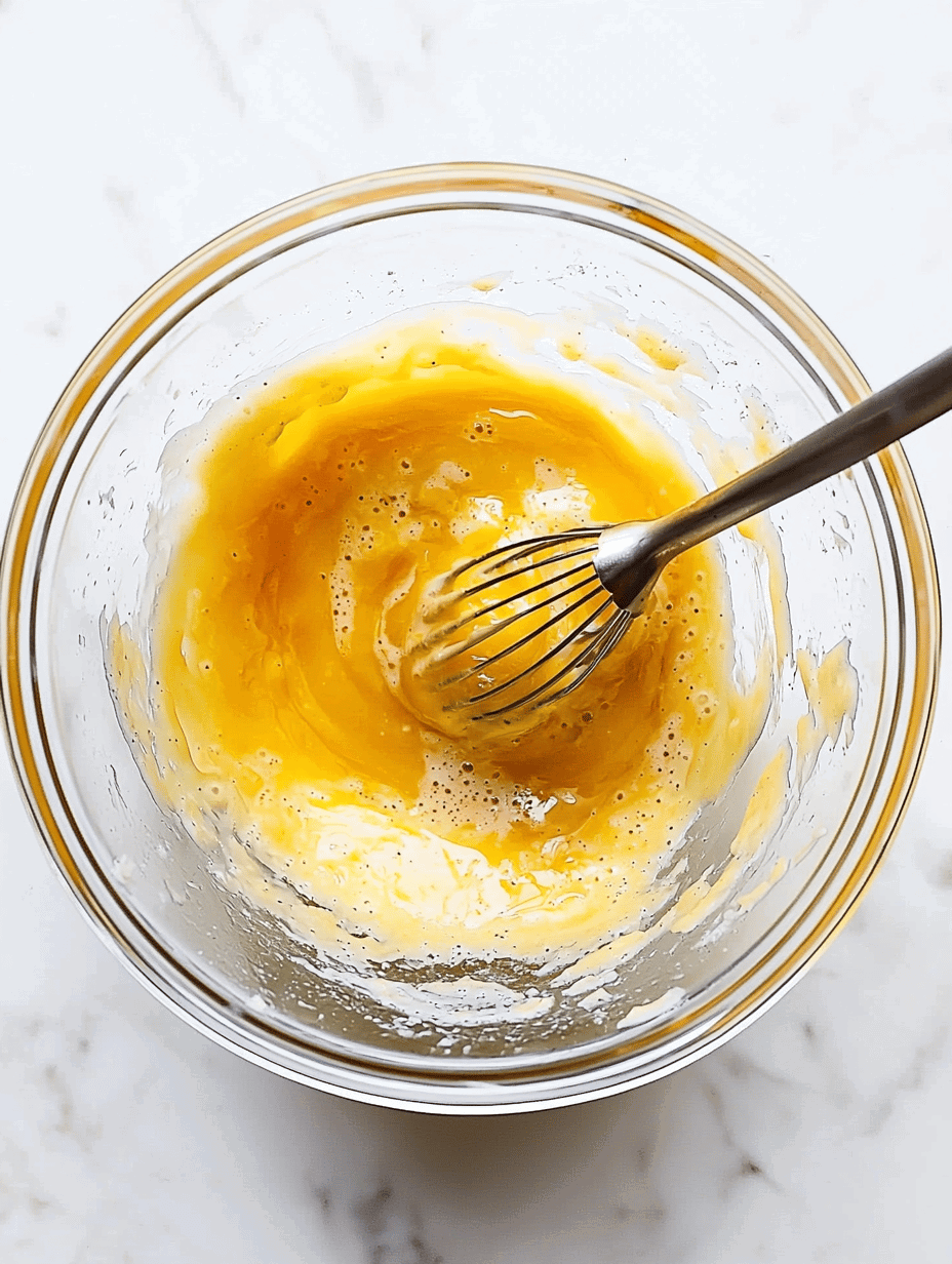 - In a mixing bowl, whisk together the eggs and sugar until the mixture turns slightly pale and becomes smooth.