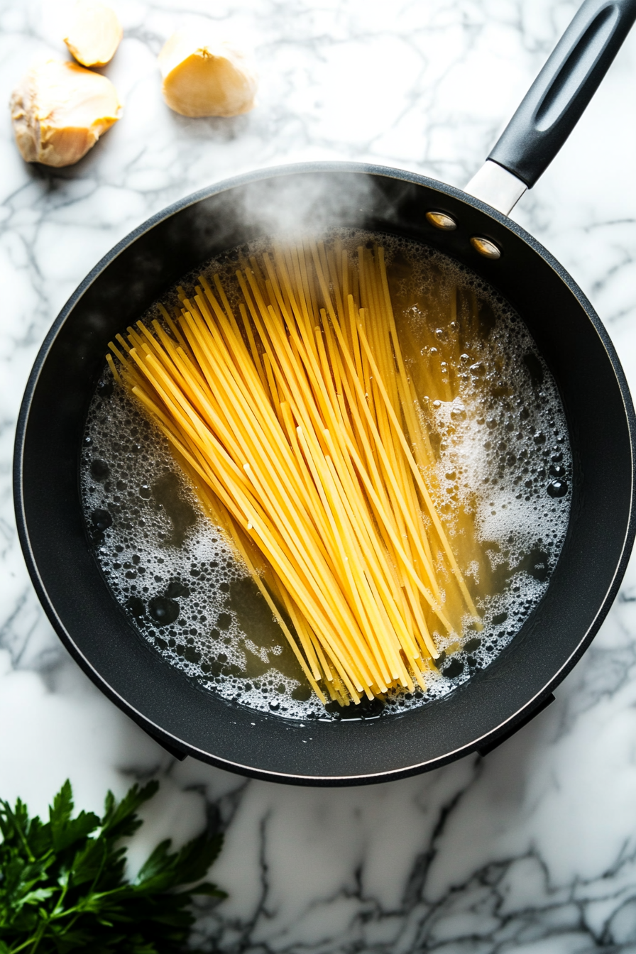 - Boil a pot of salted water for the linguine.