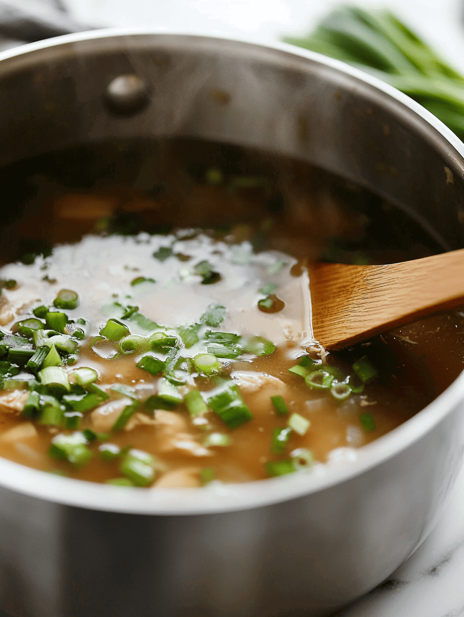 - Pour in chicken broth and bring to a simmer.4 cups Chicken broth