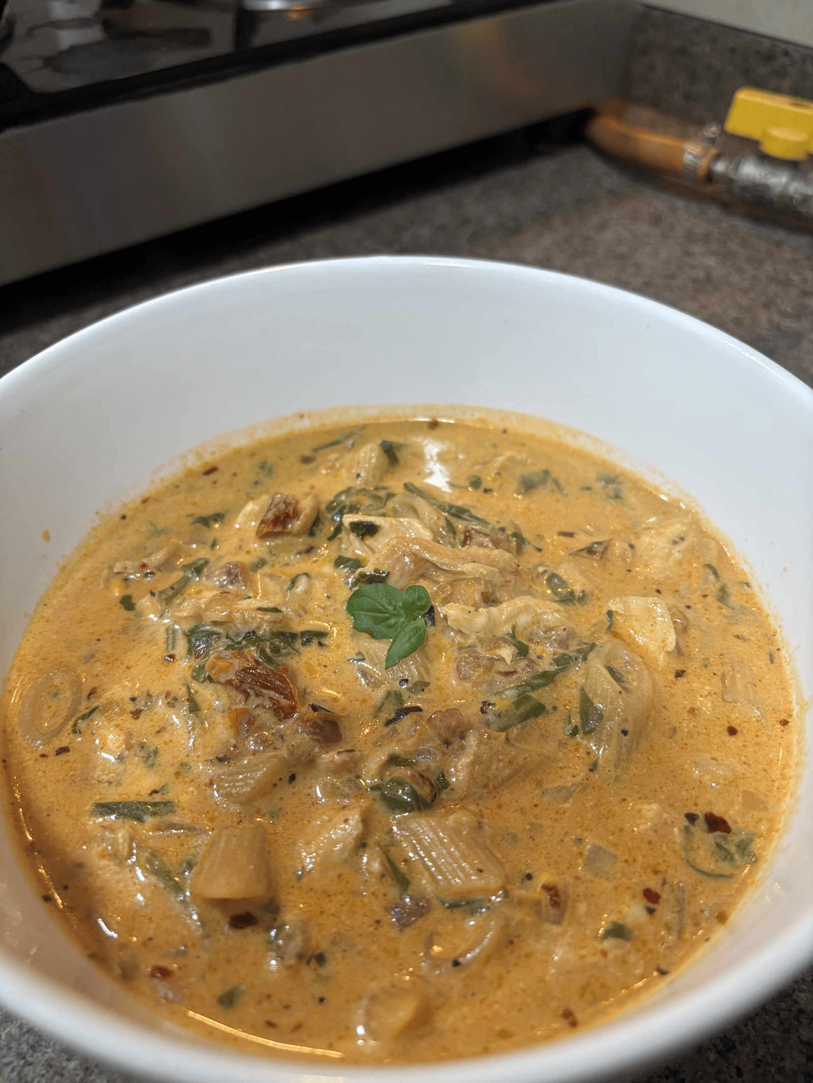 The first time I made this, I had cooked chicken that needed using and didn’t feel like making another casserole. Turning the creamy tomato-herb flavors into a soup made sense. It felt lighter than the original skillet version but still satisfying.