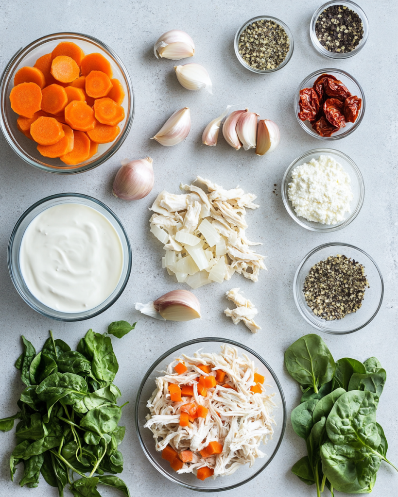 It’s also practical. If you already have leftover roasted or rotisserie chicken, most of the work is done. The soup builds flavor in layers, starting with onion and garlic, then broth, herbs, and finally cream and spinach. Everything cooks in one pot, which keeps cleanup manageable.