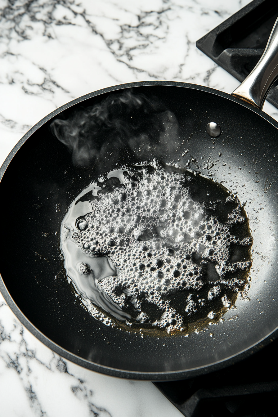 - Pour about ½-inch of oil into your pan and heat over medium-high.