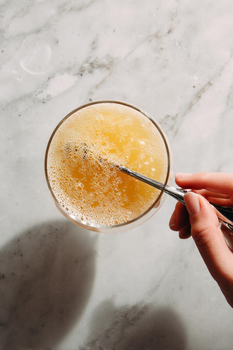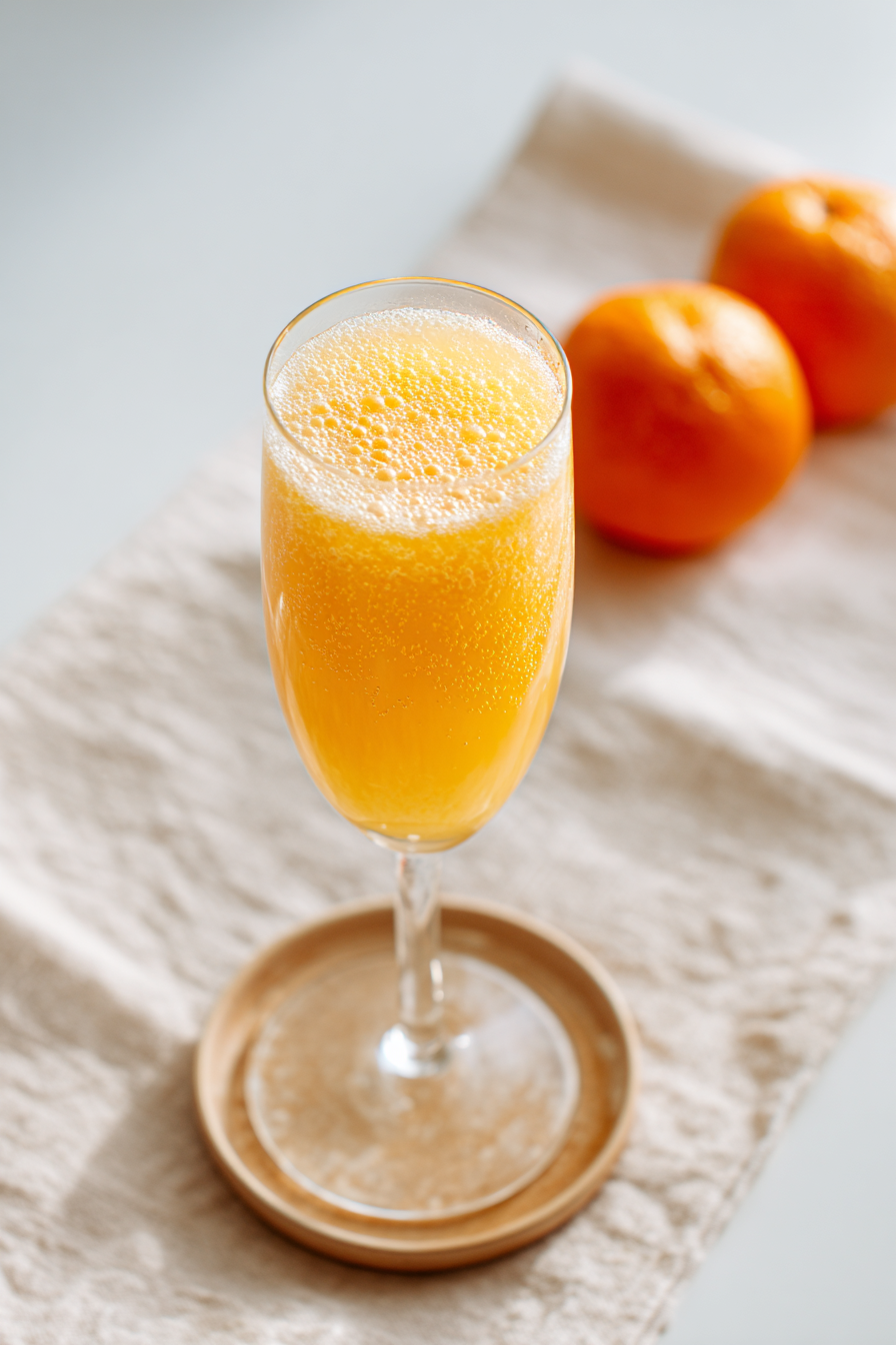 - Peach Purée (“Bellini Mimosa”): Combine peach purée with sparkling wine for a Bellini-inspired mimosa, adding a fruity sweetness.