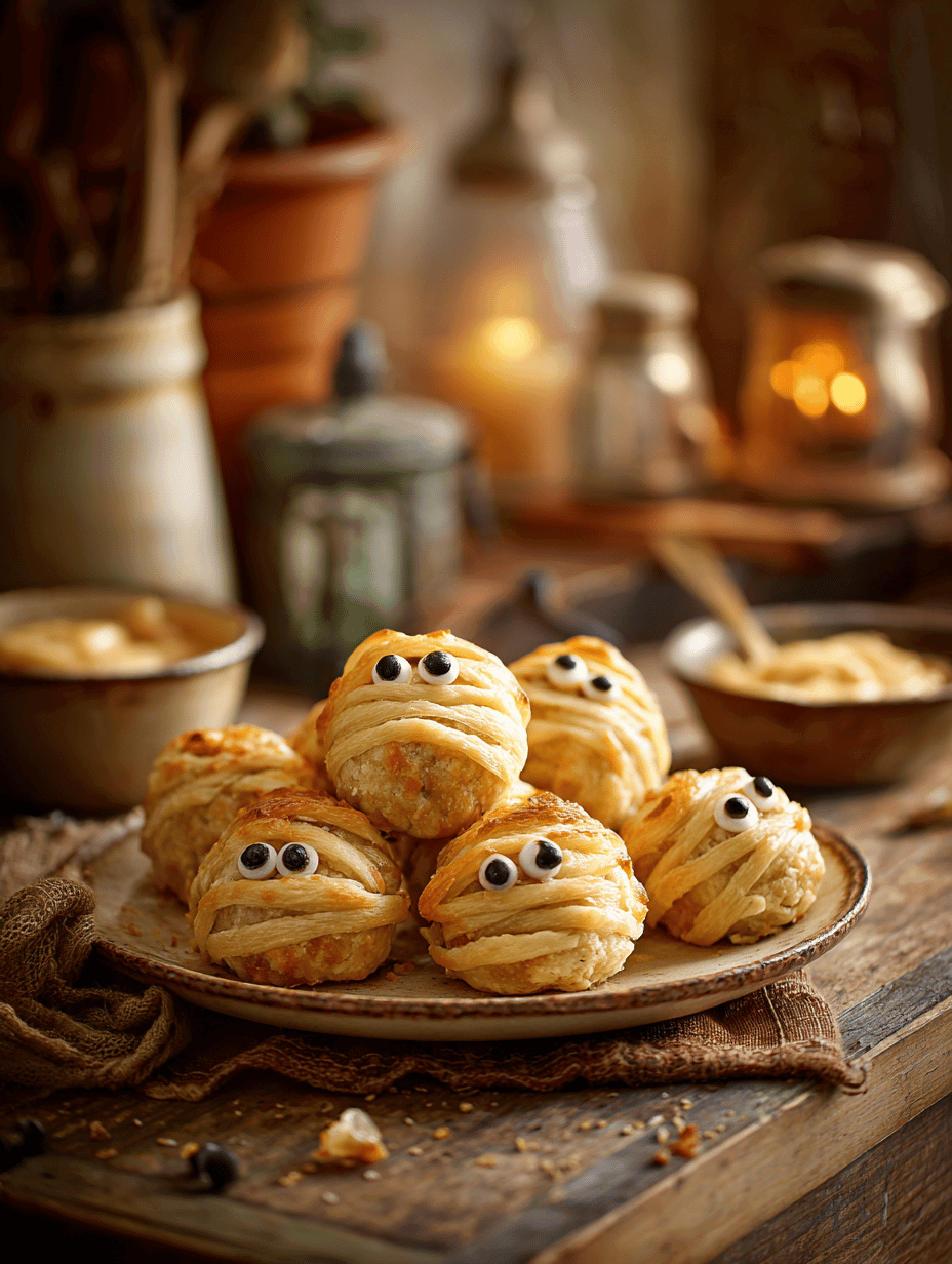 Mummy meatballs started as a silly idea but turned into a comforting, nostalgic dish that feels like a warm hug. They’re a bit chaotic—lumpy, uneven, but full of flavor and personality. The secret lies in the imperfect, bandage-like appearance, which makes them irresistibly charming.
