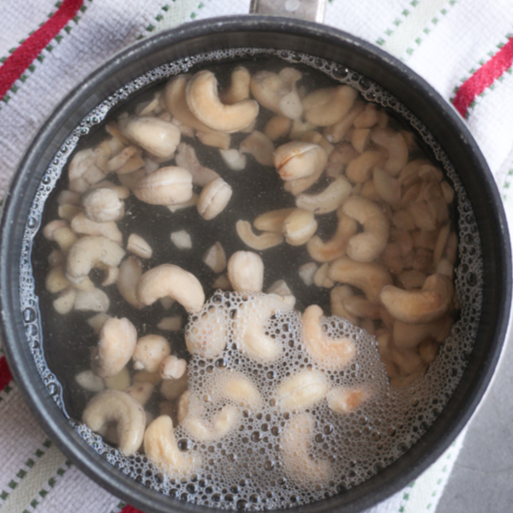 - Soak cashews in boiling water for at least an hour. Then, drain the water.