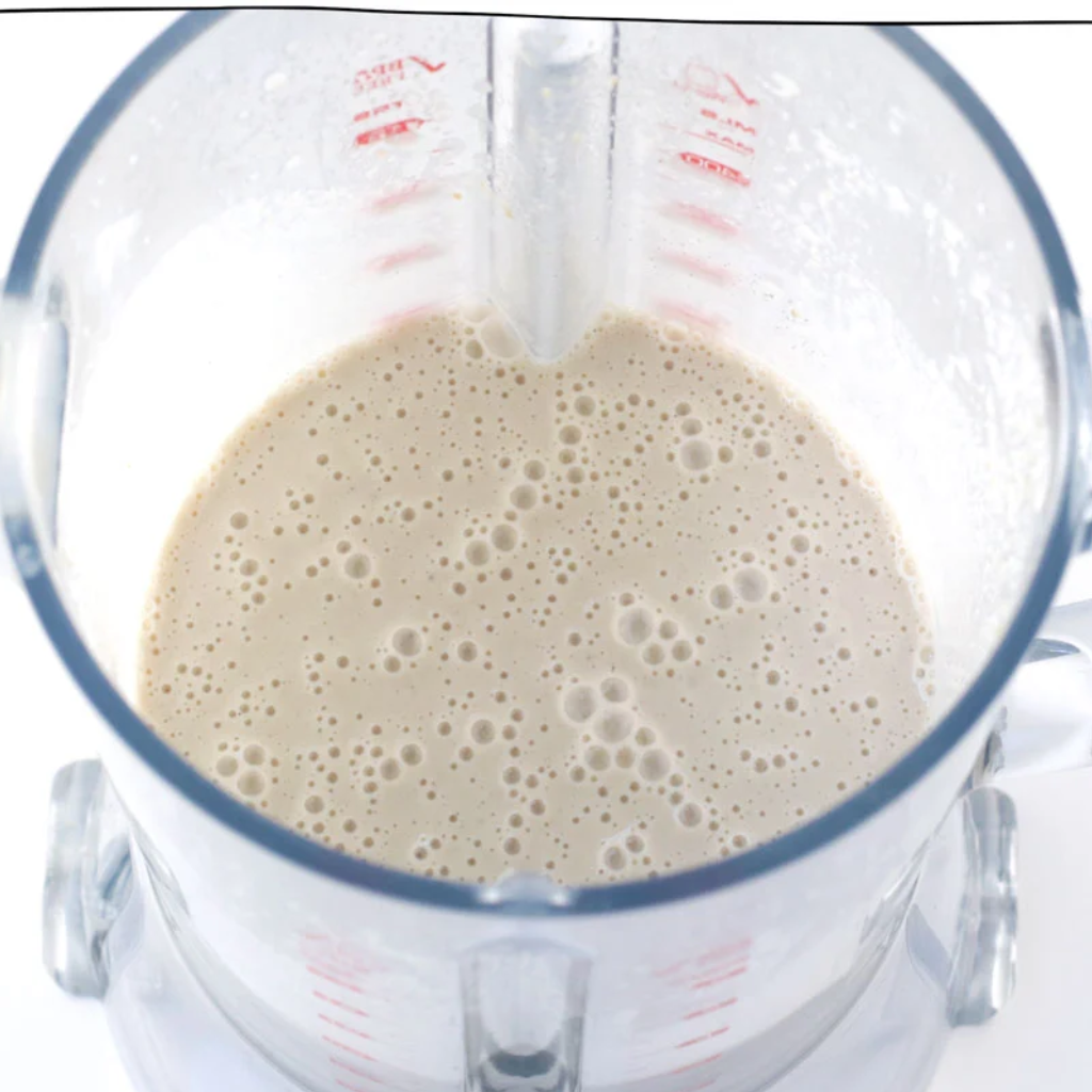 - In a blender, combine soaked cashews with half of the oat milk. Blend until smooth.