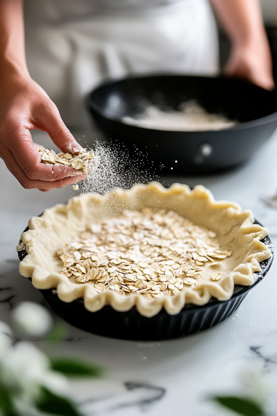 - Sprinkle oats on the bottom of the dough-lined pie plate to absorb moisture.