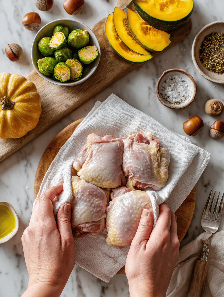 • Preheat your oven to 200°C (392°F) and pat the chicken thighs dry with paper towels, ensuring the skin is as dry as possible for crisping.