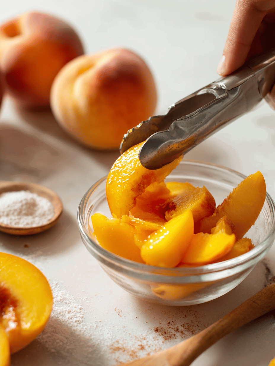 • Peaches: Juicy, fragrant, and just soft enough to yield under a fork. If they’re not ripe, the filling can be dull—consider a splash of lemon juice or a pinch of cinnamon to boost the flavor.