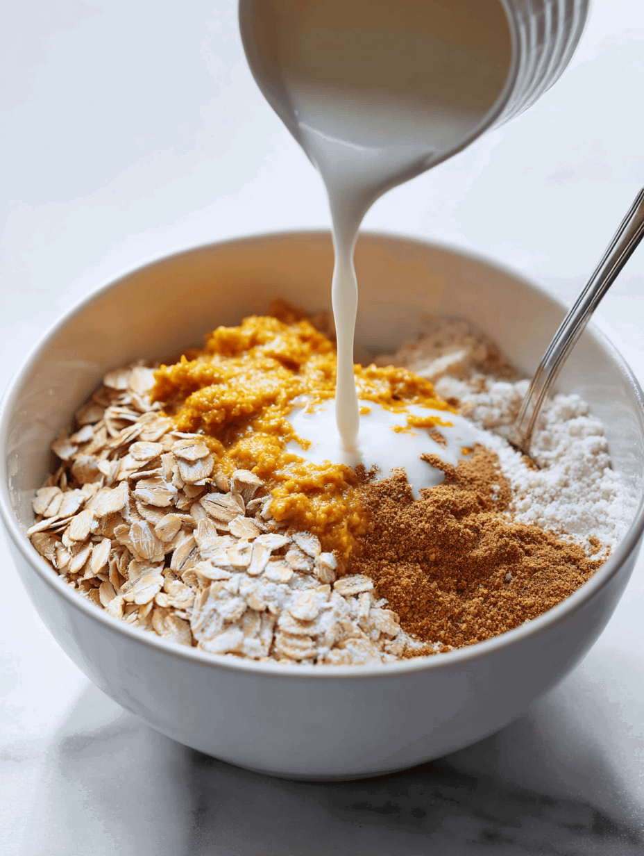 - Pumpkin purée: I use canned pumpkin, but roasted fresh pumpkin works too. It adds a smooth, sweet, almost velvety texture that makes every bite cozy. If you’re out, a spoonful of sweet potato purée can work in a pinch.