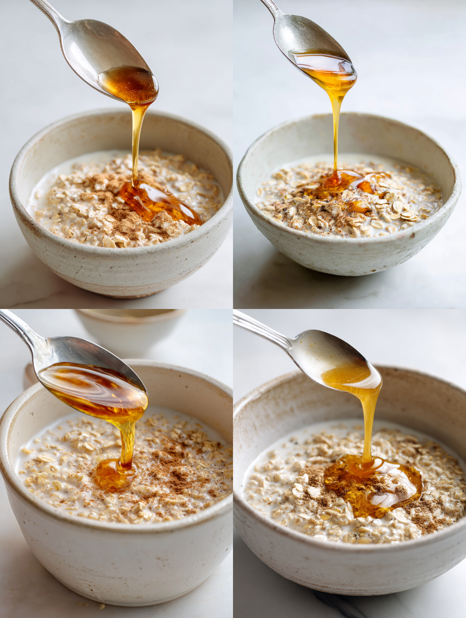 - Sweetener: Maple syrup or honey — I like the deep sweetness they bring. A drizzle on top is optional but adds a nice sticky contrast. If you prefer less sugar, a mashed banana works well too.
