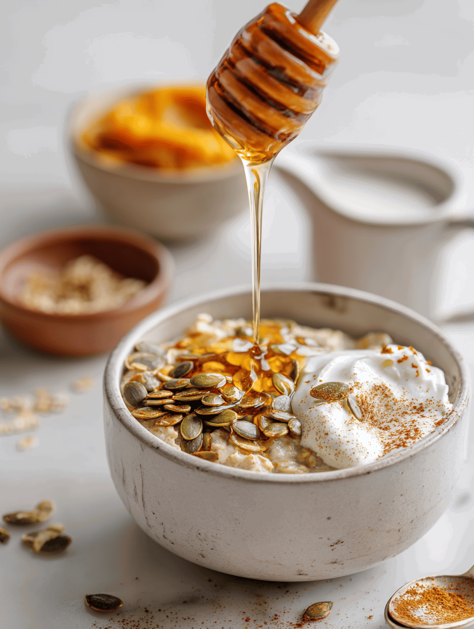 - Top the oats with toasted pumpkin seeds, a drizzle of honey, or a dollop of Greek yogurt for added flavor and crunch. Serve cold or warm for a comforting start to your day.
