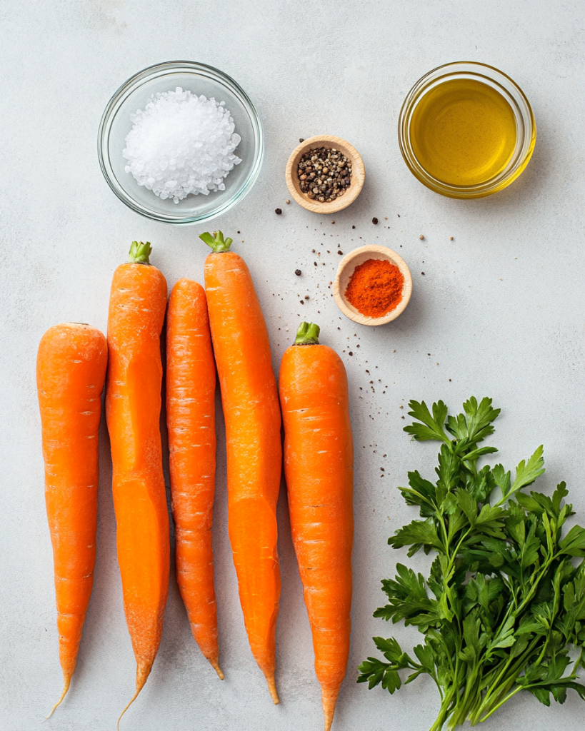 Choose firm carrots with bright color and minimal cracking. If they’re large, cut them into evenly sized pieces so they cook uniformly. Olive oil helps with browning and prevents drying. Kosher salt distributes more evenly than fine salt. Fresh parsley is optional but adds a clean, fresh finish at the end.