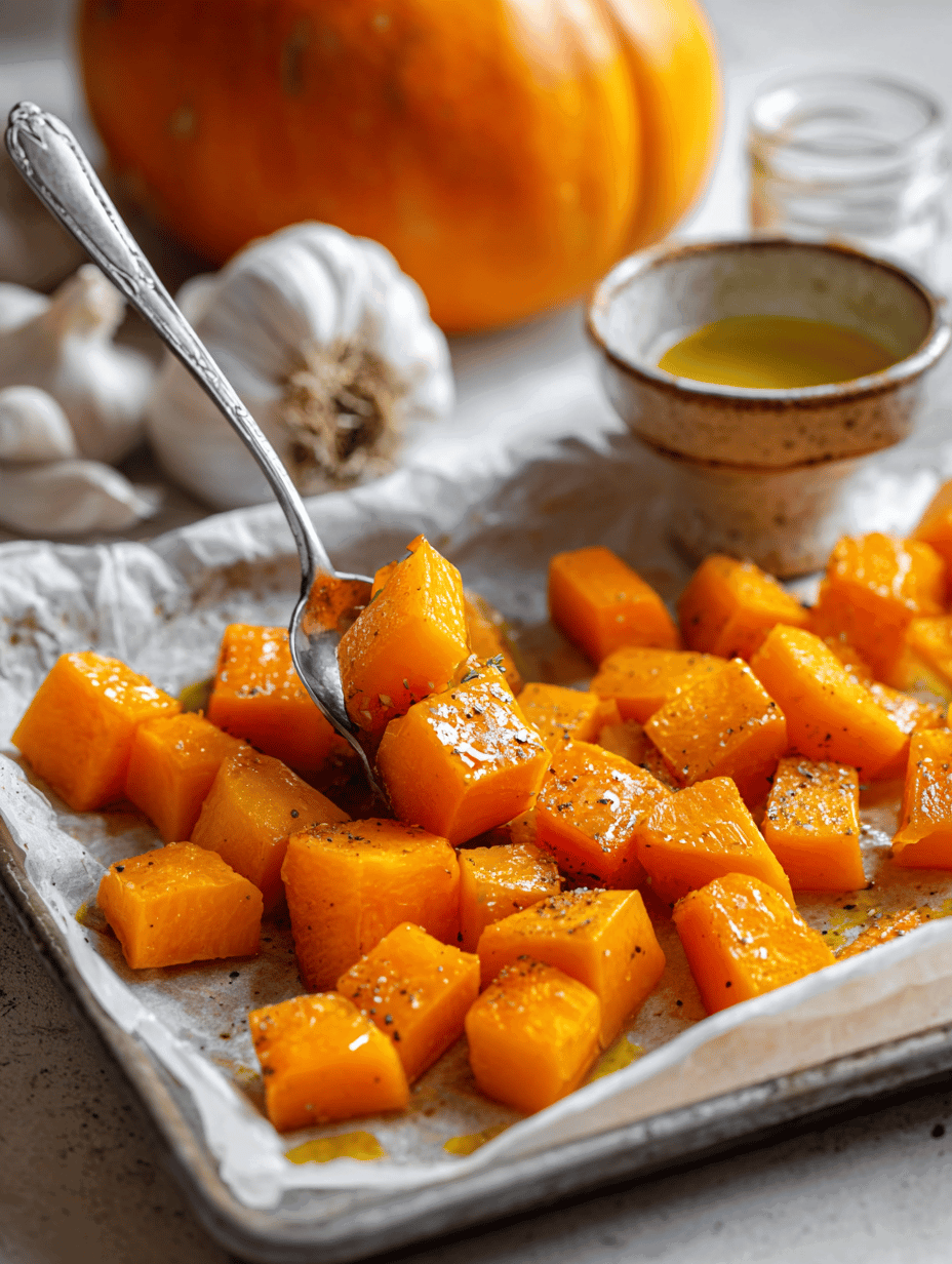 Step 3: Spread pumpkin on a baking sheet lined with parchment paper. Roast for 30-35 minutes until edges are caramelized and flesh is soft.