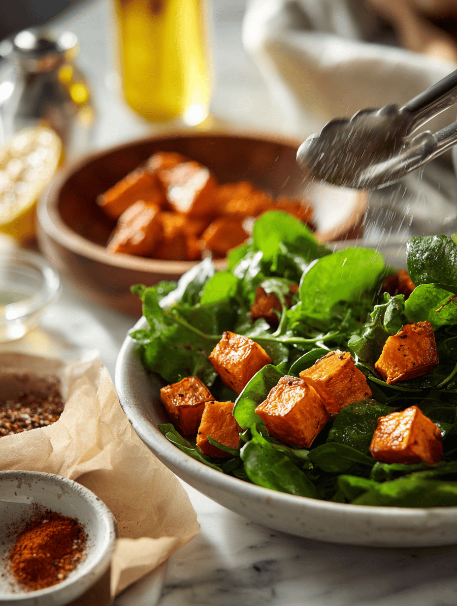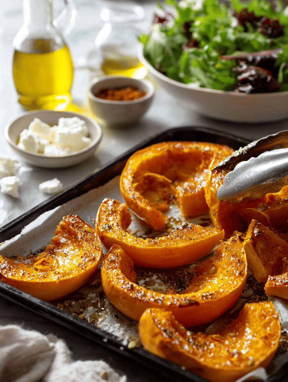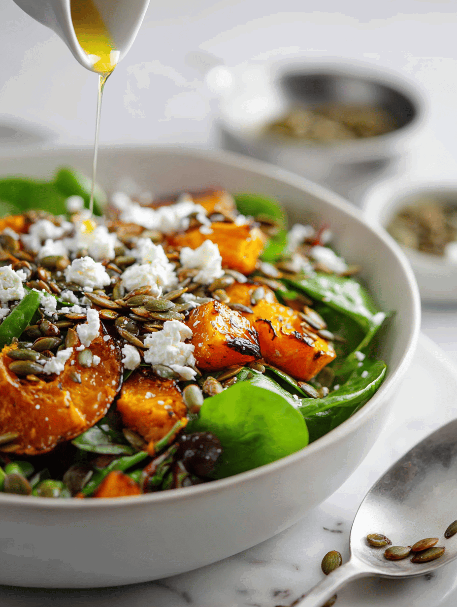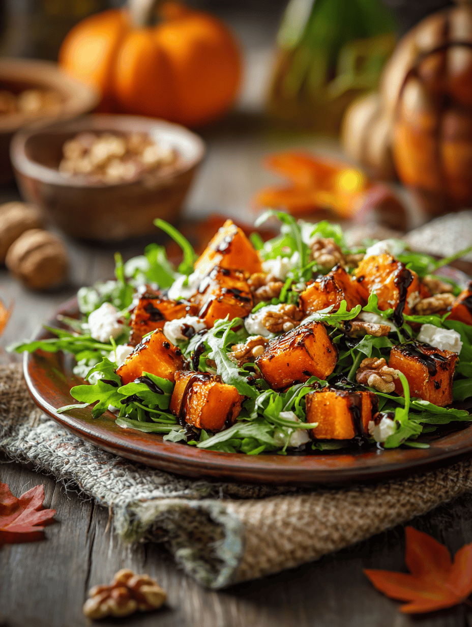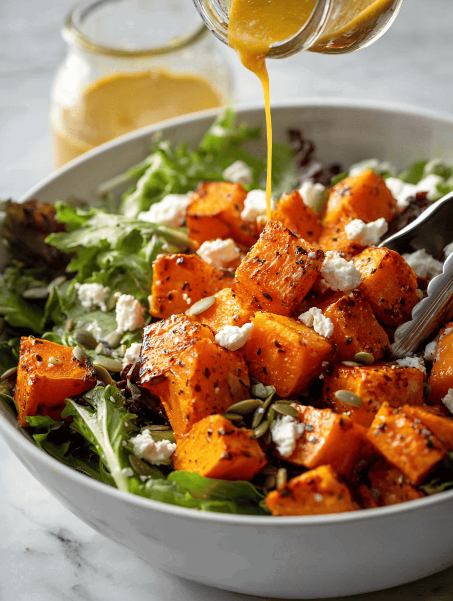 - Serve immediately, enjoying the contrast of warm pumpkin with crisp greens and tangy dressing.