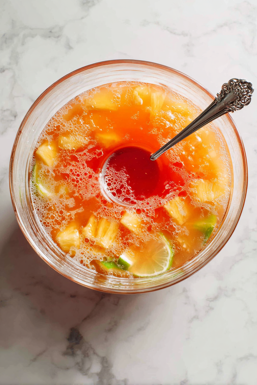 One such fruity punch with pineapple and orange juice is today’s wisdom. I have also heard that this recipe tastes even more delicious when served with seafood. So I have decided to try it along with Air Fryer Shrimp and Seafood Medley.