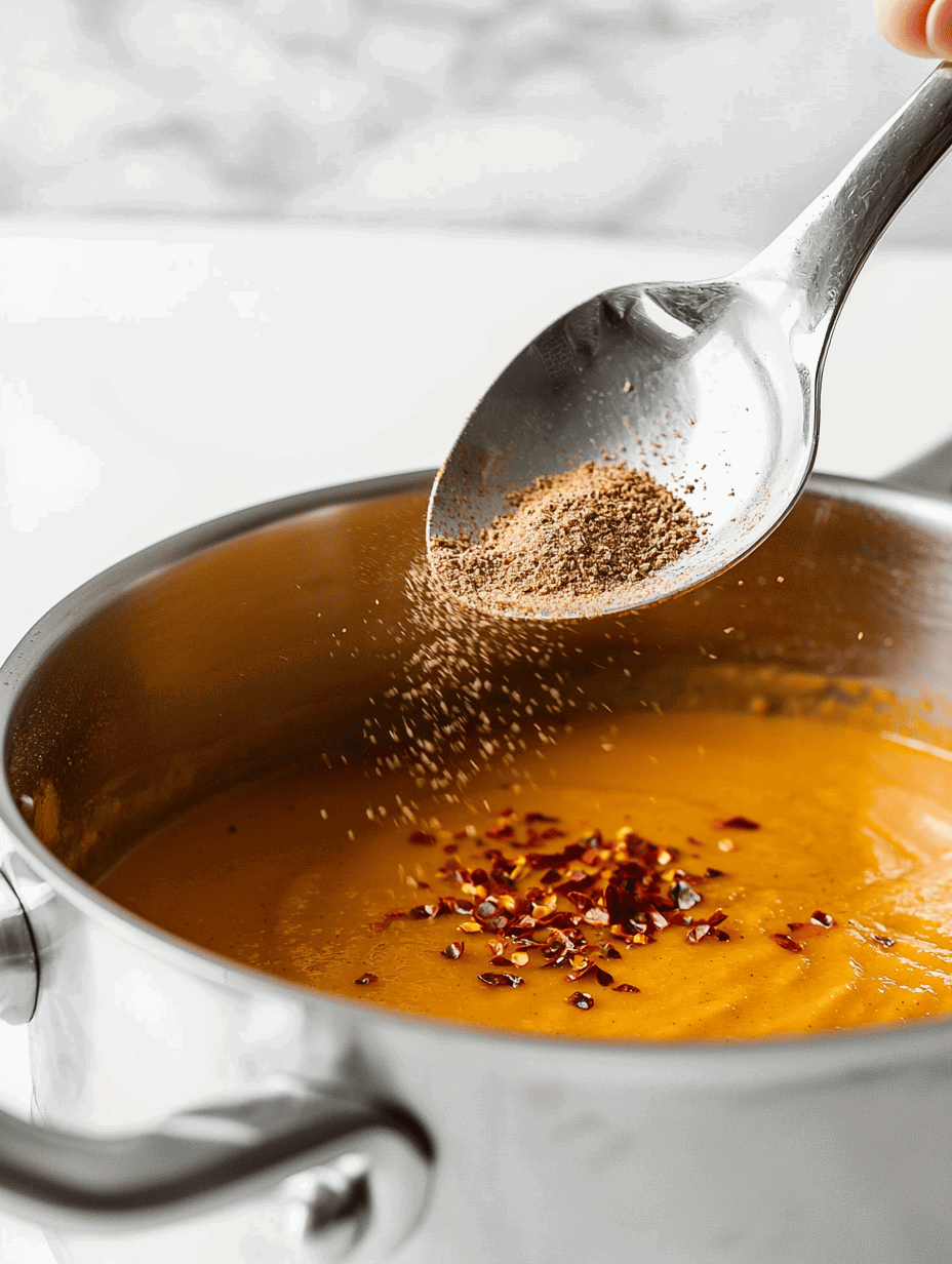 - Sprinkle in the ground nutmeg, cinnamon, and chili flakes (if using). Give everything a good stir to evenly distribute the spices.2 cups pumpkin puree