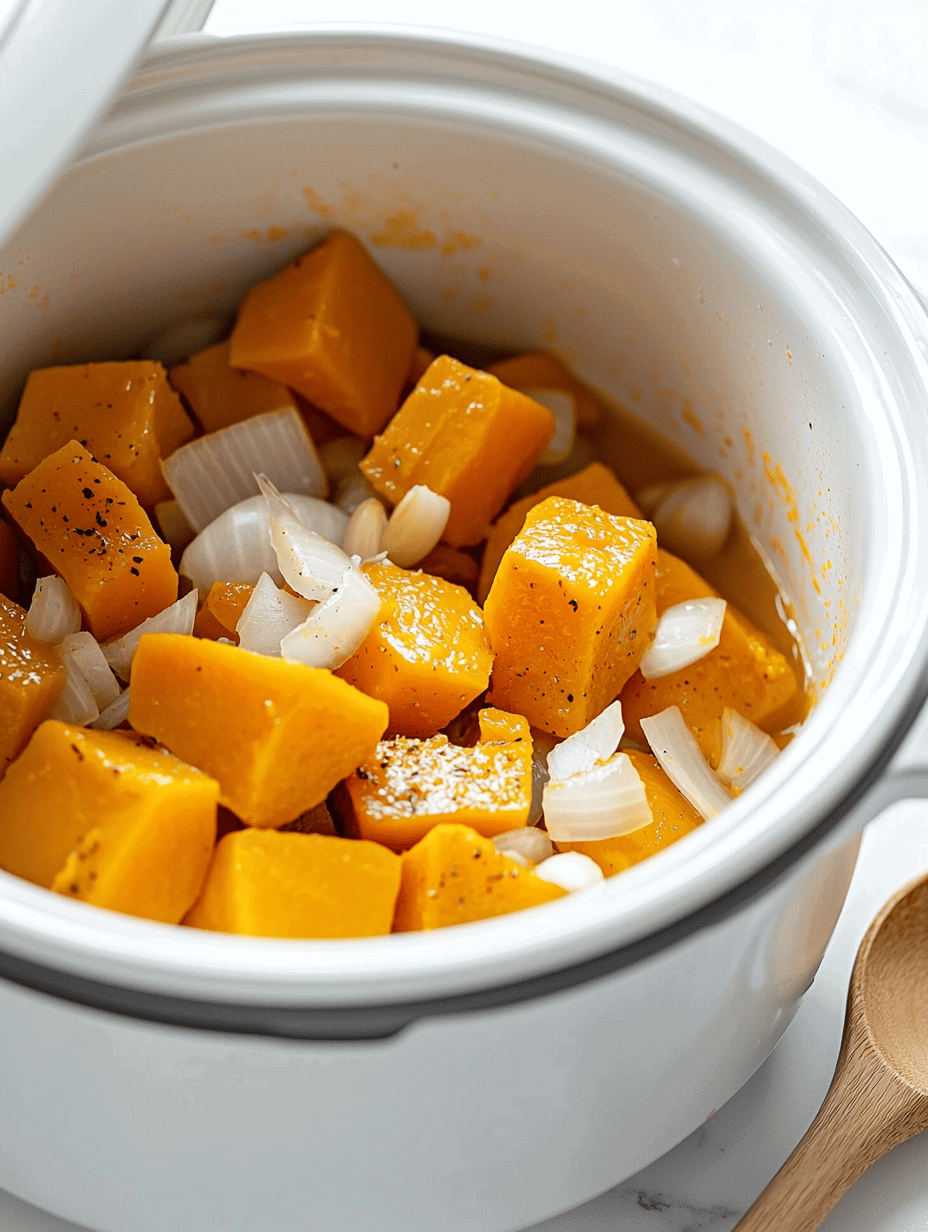 - Cover the slow cooker and set it to low. Let the soup simmer gently for about 4 hours, allowing the flavors to meld and the pumpkin to soften completely.