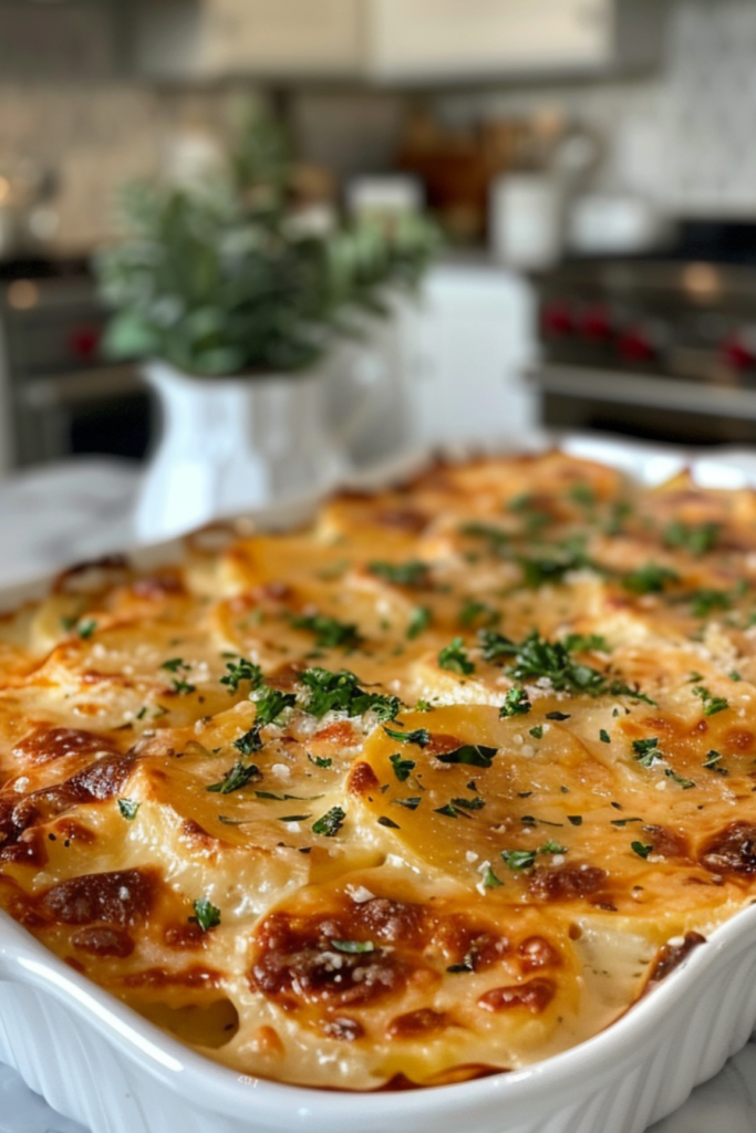 Scalloped potatoes are the ultimate comfort food—a rich, creamy dish that’s perfect for family dinners or holiday gatherings. Thinly sliced potatoes are layered with a luscious garlic cream sauce, then baked to perfection, bubbling and golden-brown on top. This version uses Gruyère cheese for a touch of nuttiness, making each bite silky and indulgent. Whether you’re serving it as a side dish for Easter or just because, these scalloped potatoes will have everyone coming back for seconds.