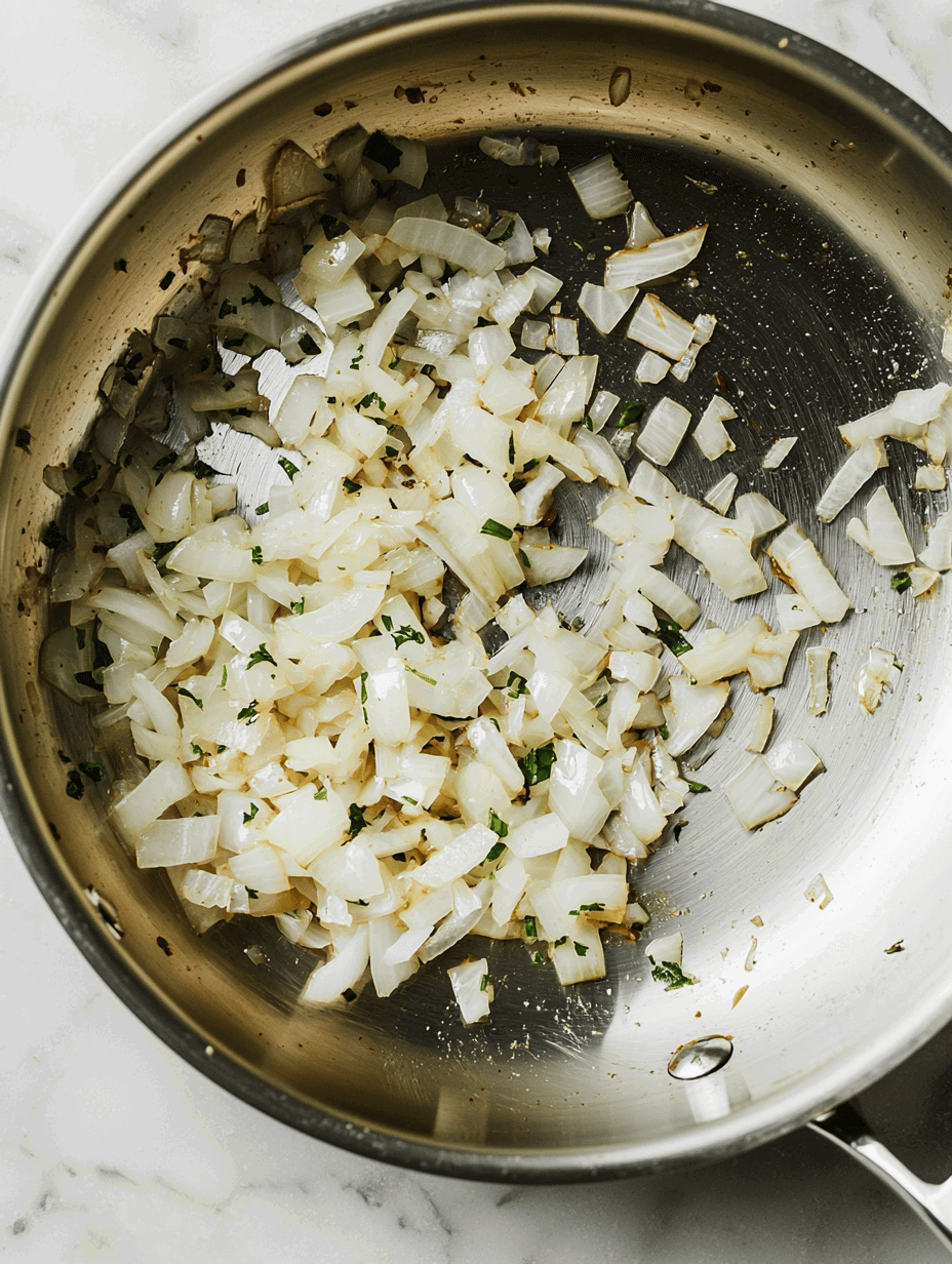 - In the same skillet, add the chopped onion and minced garlic. Cook for 2-3 minutes until the onion becomes translucent and fragrant, scraping up any browned bits from the bottom of the pan. Transfer the sautéed onion and garlic into the slow cooker.